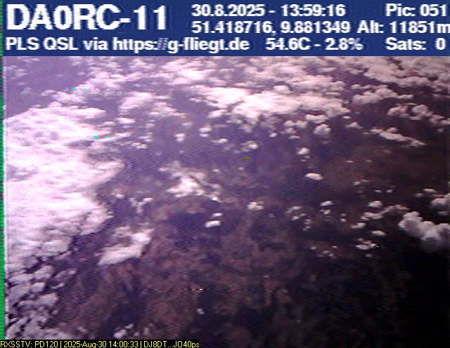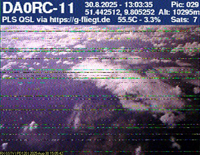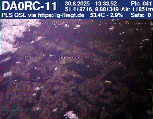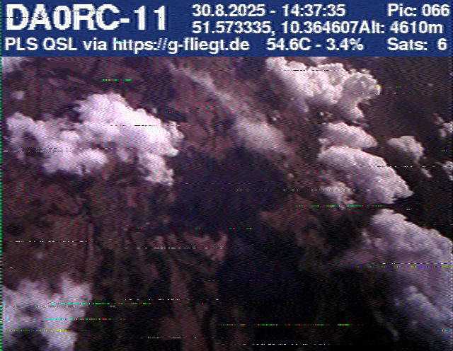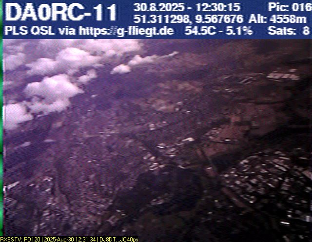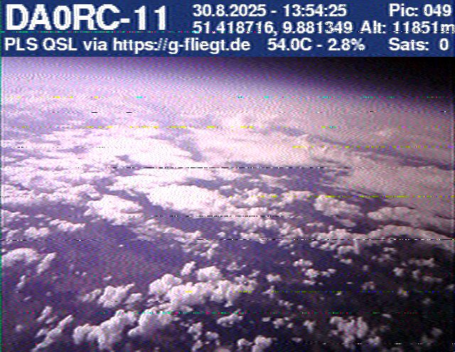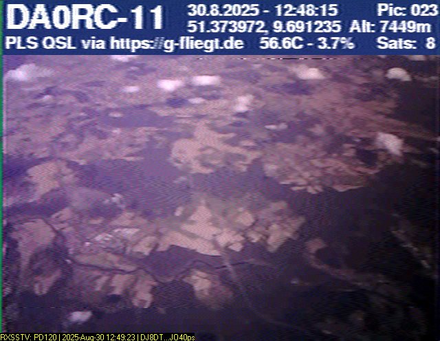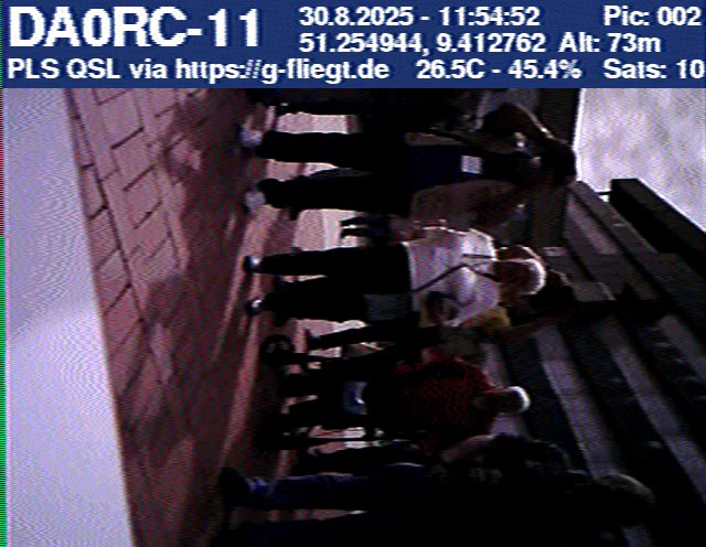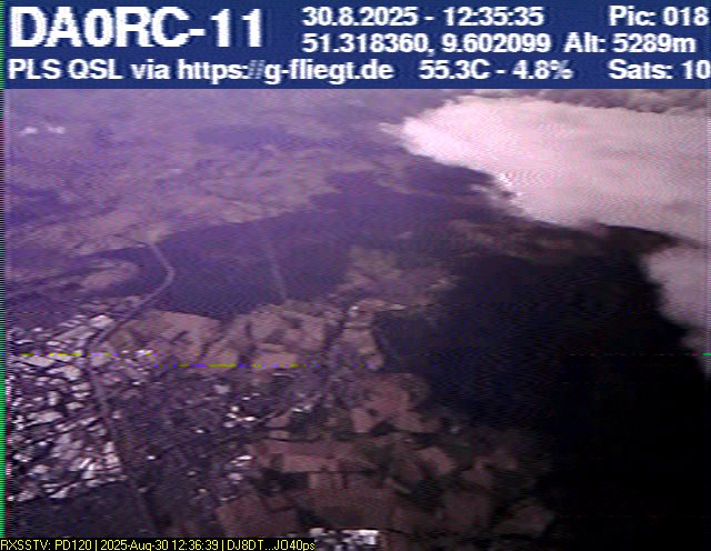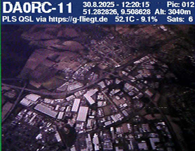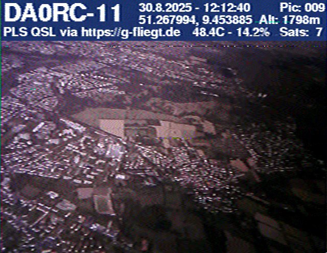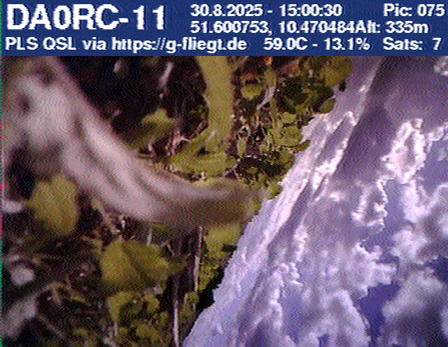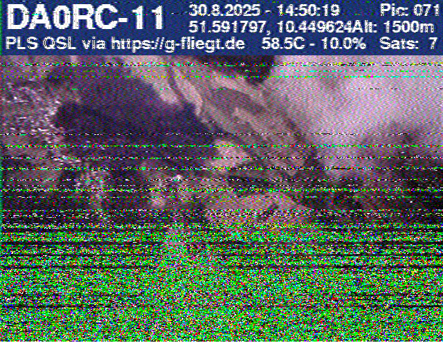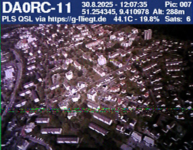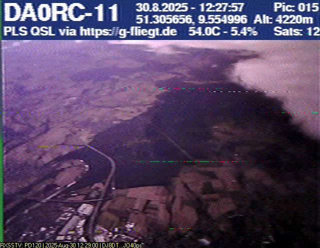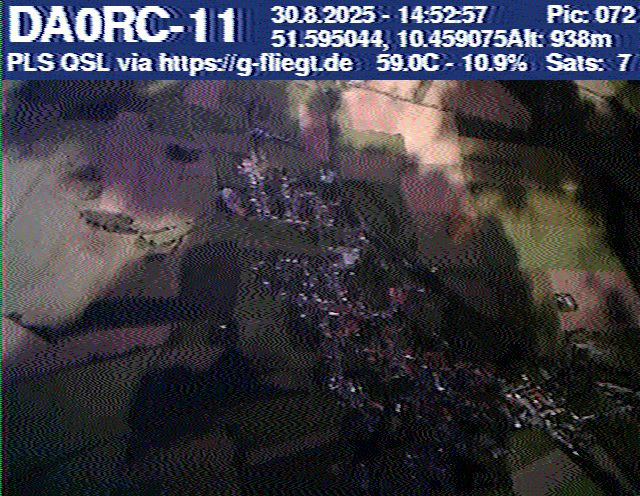 Neben unserem Team waren zum Start des Ballons auch die Pressesprecherin Steffi (DO7PR), ein Vertreter des Sponsors VDE sowie der Bürgermeister der Stadt Baunatal, Henry Richter, anwesend. Direkt nach dem Start trafen bereits die ersten Bilder per SSTV an unserer aufgebauten Empfangsstation ein und wurden von vielen Interessierten bestaunt. Abseits des 2-m-Senders war das LoRa-APRS leider nicht funktionsfähig, sodass wir nur etwa alle zwei Minuten zwischen den SSTV-Aussendungen eine APRS-Position erhielten. Nach rund einer halben Stunde teilte sich unser Team auf, und Manuel begann die Jagd, um den Payload hoffentlich wiederzufinden.