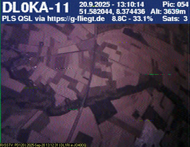 Der empfang der SSTV Bilder mit unserer am Startplatz aufgebauten Empfangsstation war dank des "Gilb" Empfangswagen für fast die gesamte Flugzeit möglich. APRS zwischen den SSTV-Aussendungen sowie auch das LoRa APRS im 70cm Band funktionierte problemlos, so hatten wir fast die ganze Zeit aktuelle Positionsmeldungen.